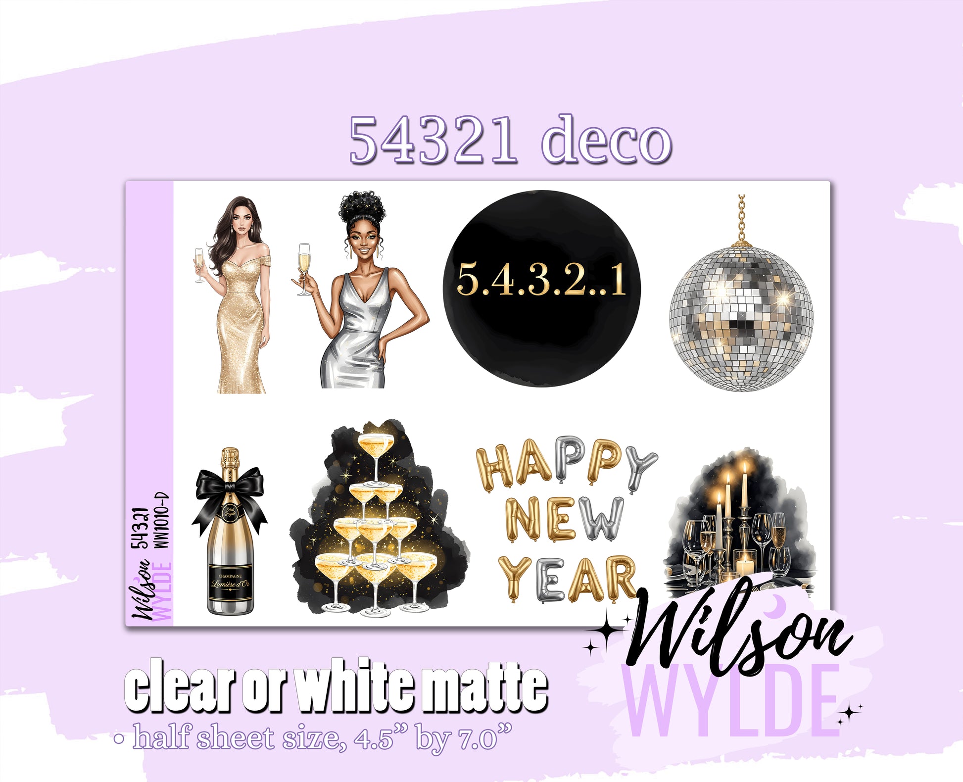 54321 New Year's eve mini weekly sticker kit, Cousin or Standard Vertical format, a la carte and bundle options. WW1010