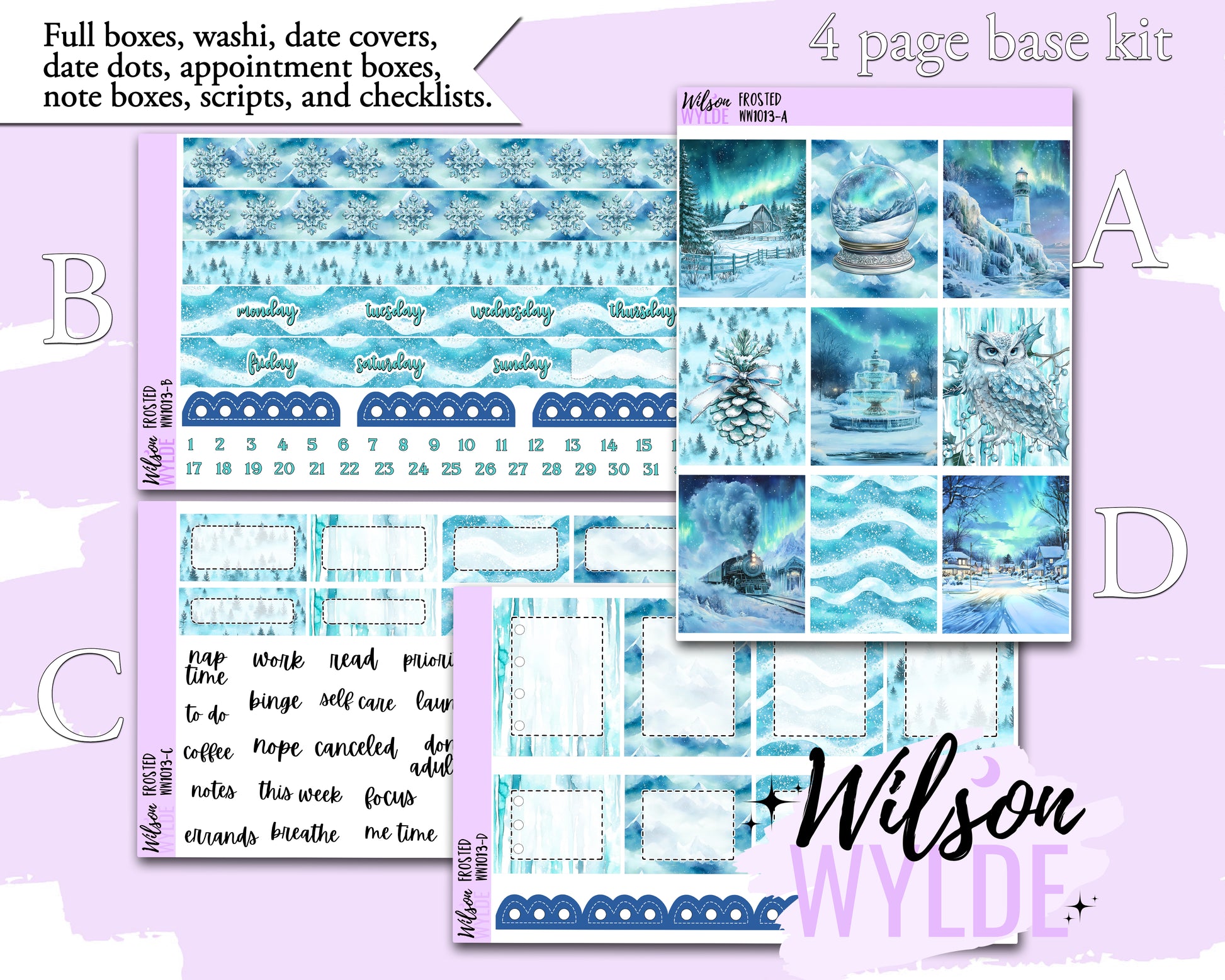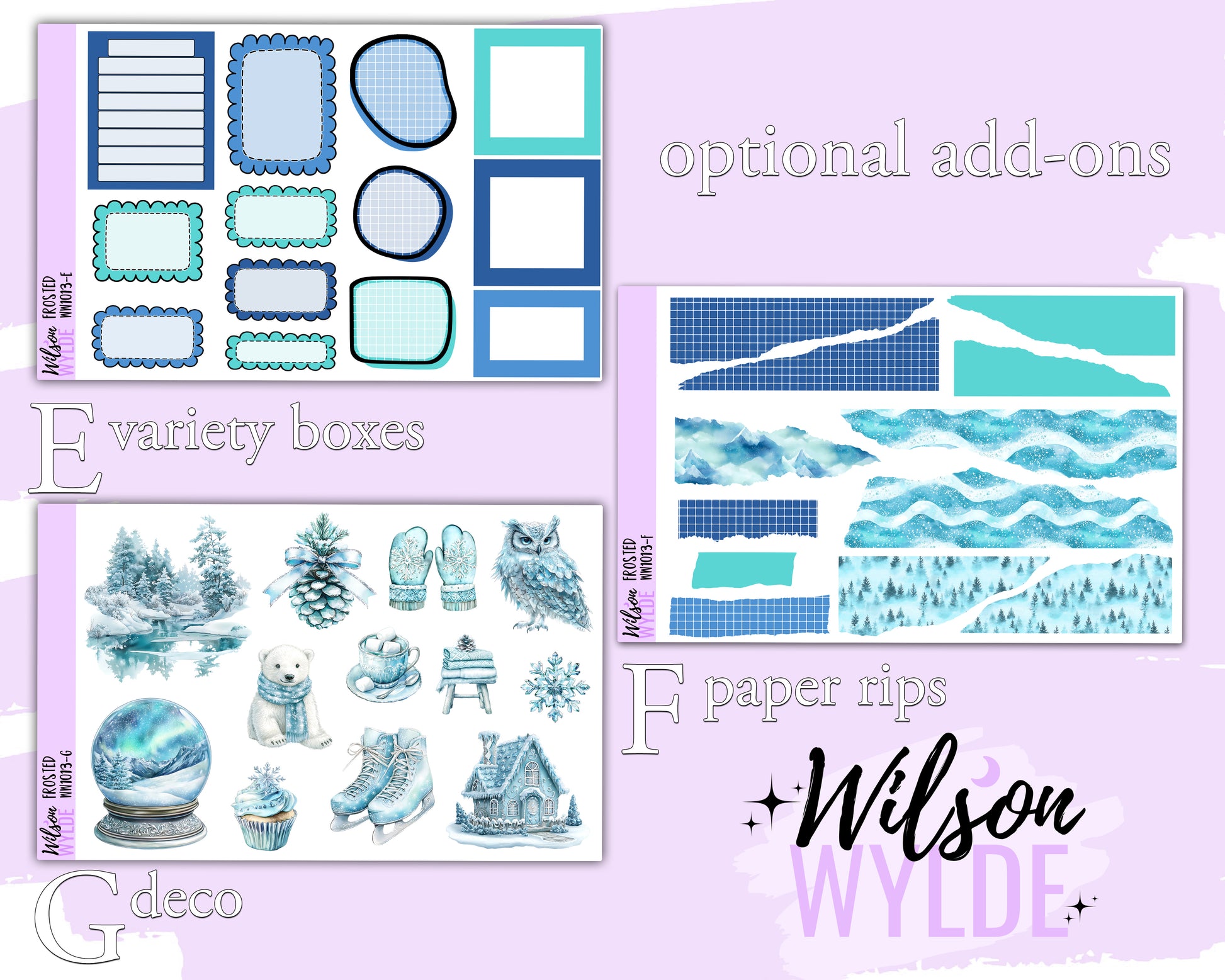 Frosted weekly sticker kit, HOBONICHI COUSIN format, a la carte and bundle options. WW1013