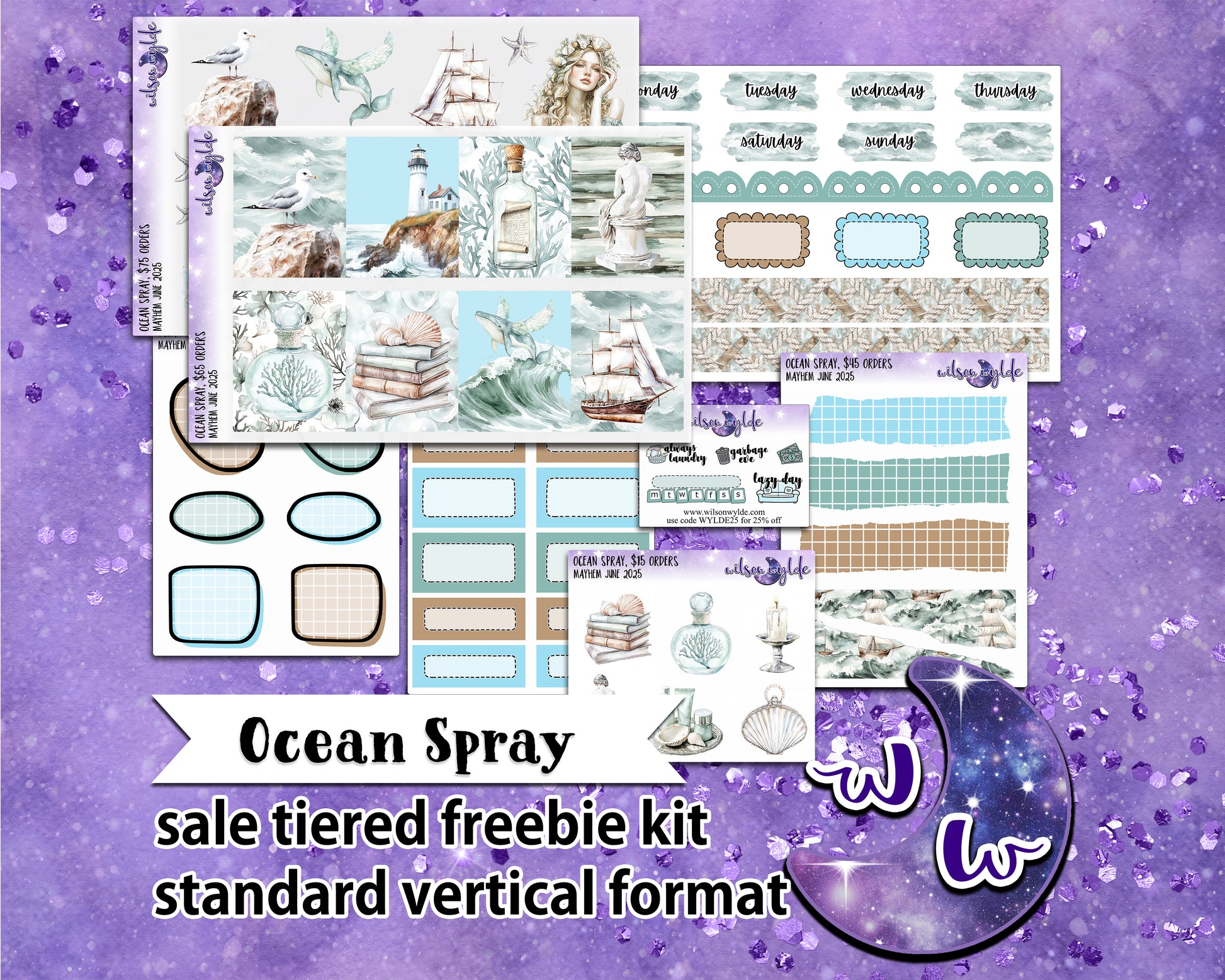 Ocean Spray, tiered freebie kit, standard vertical format. 8 planner sticker sheets, includes deco, full and appointment boxes.