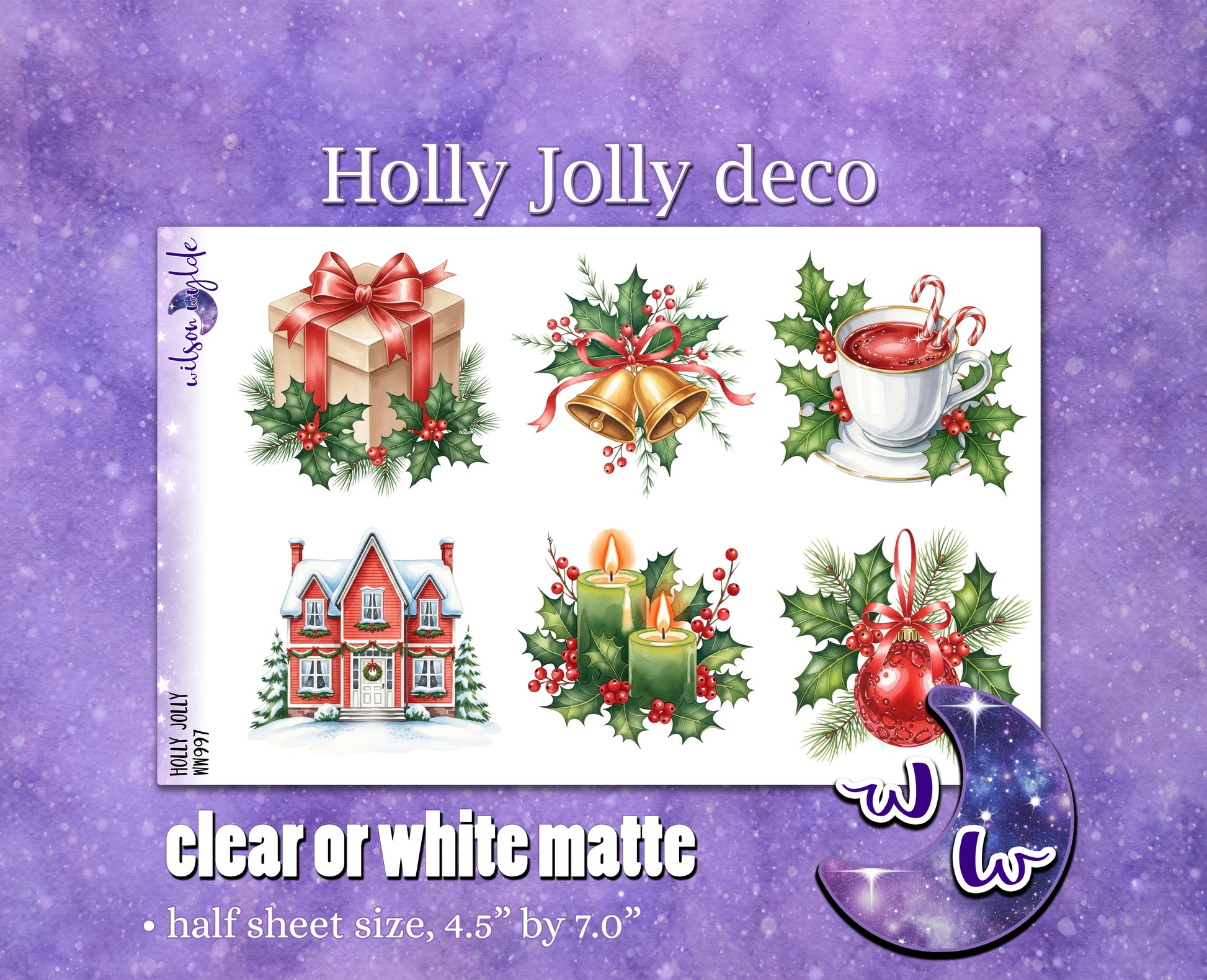 Holly Jolly deco planner stickers, Matte or frosted clear. WW997